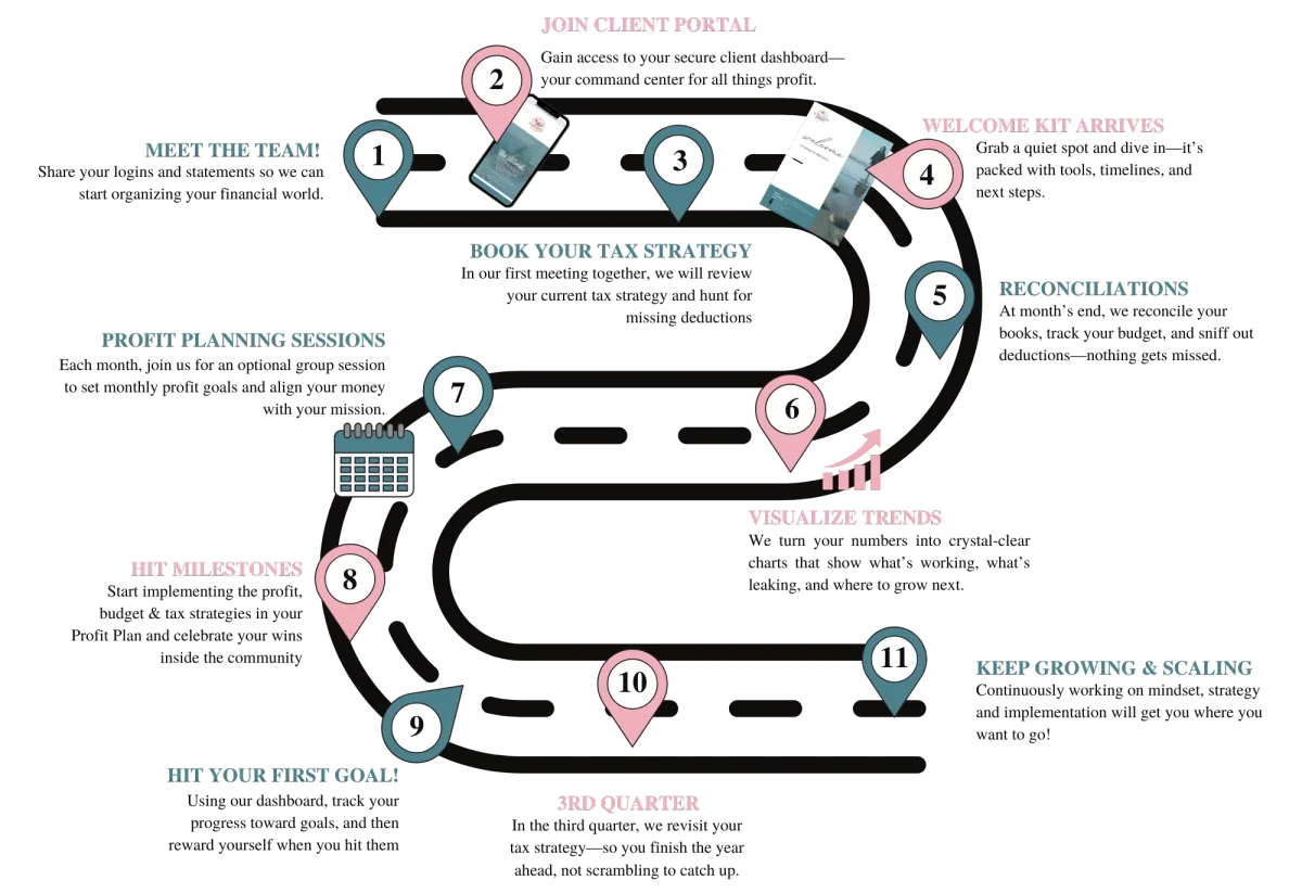 You opened your bookkeeping report each month and everything just made sense—your income, your expenses, all of it. Imagine having a financial partner who spotted leaks before they drained your profits, mapped out your deductions long before tax season, and gave you visuals that actually showed where to focus next. No more guessing. No more scrambling. Just clear, confident decisions—and the freedom to serve your clients while your profit strategy runs smoothly in the background.